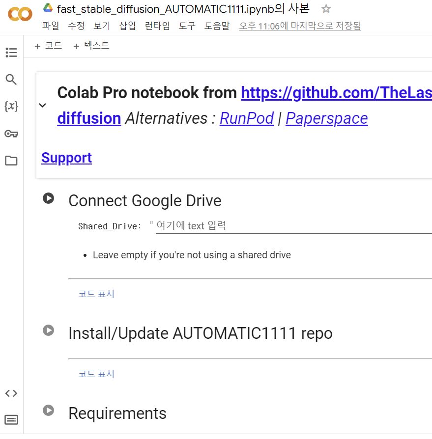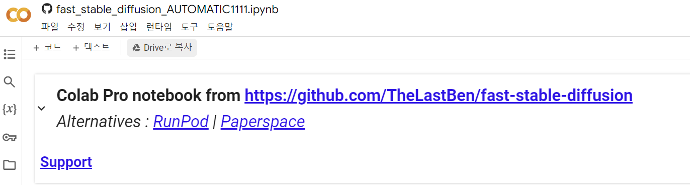 아래 보면 구글 코랩에 설치하는 방법이 나오는데... 여기에서 TheLastBen 클릭해보면